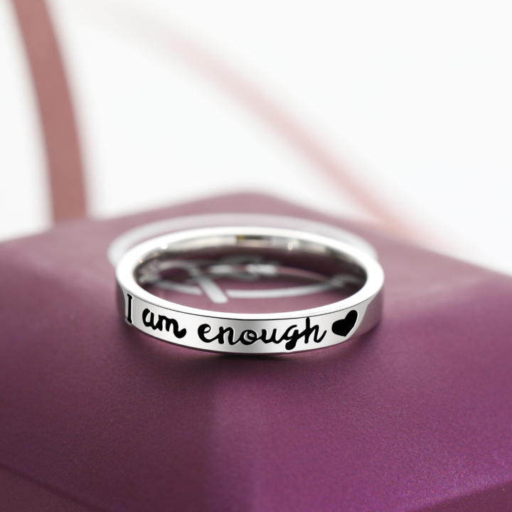 Wear the Awareness Avenue 'I Am Enough' Ring to increase self confidence and to be reminded that we are enough in this world to the people in our lives that truly matter.