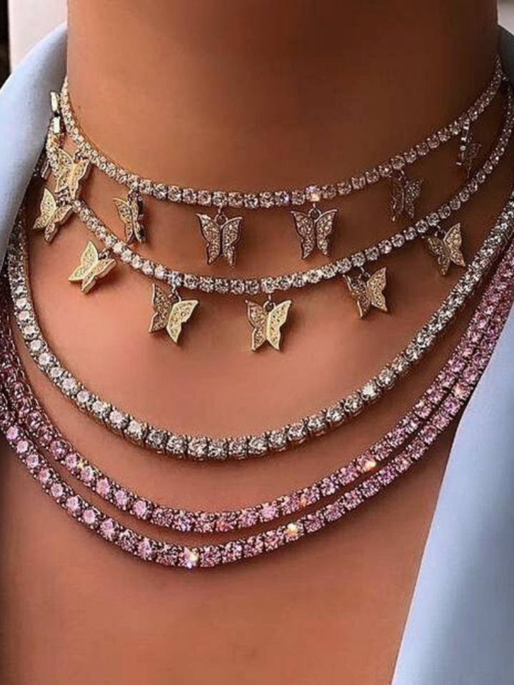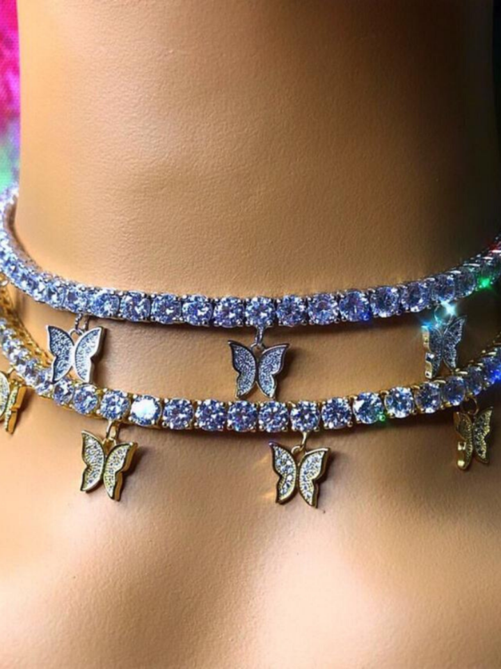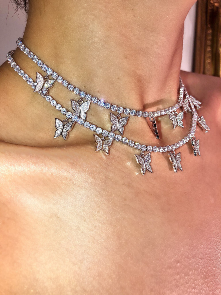 Our handmade Butterfly Chokers feature brilliant stones to keep you shining all day and night. Choose between Gold or Silver and mix and match with other necklaces to create your own unique look.