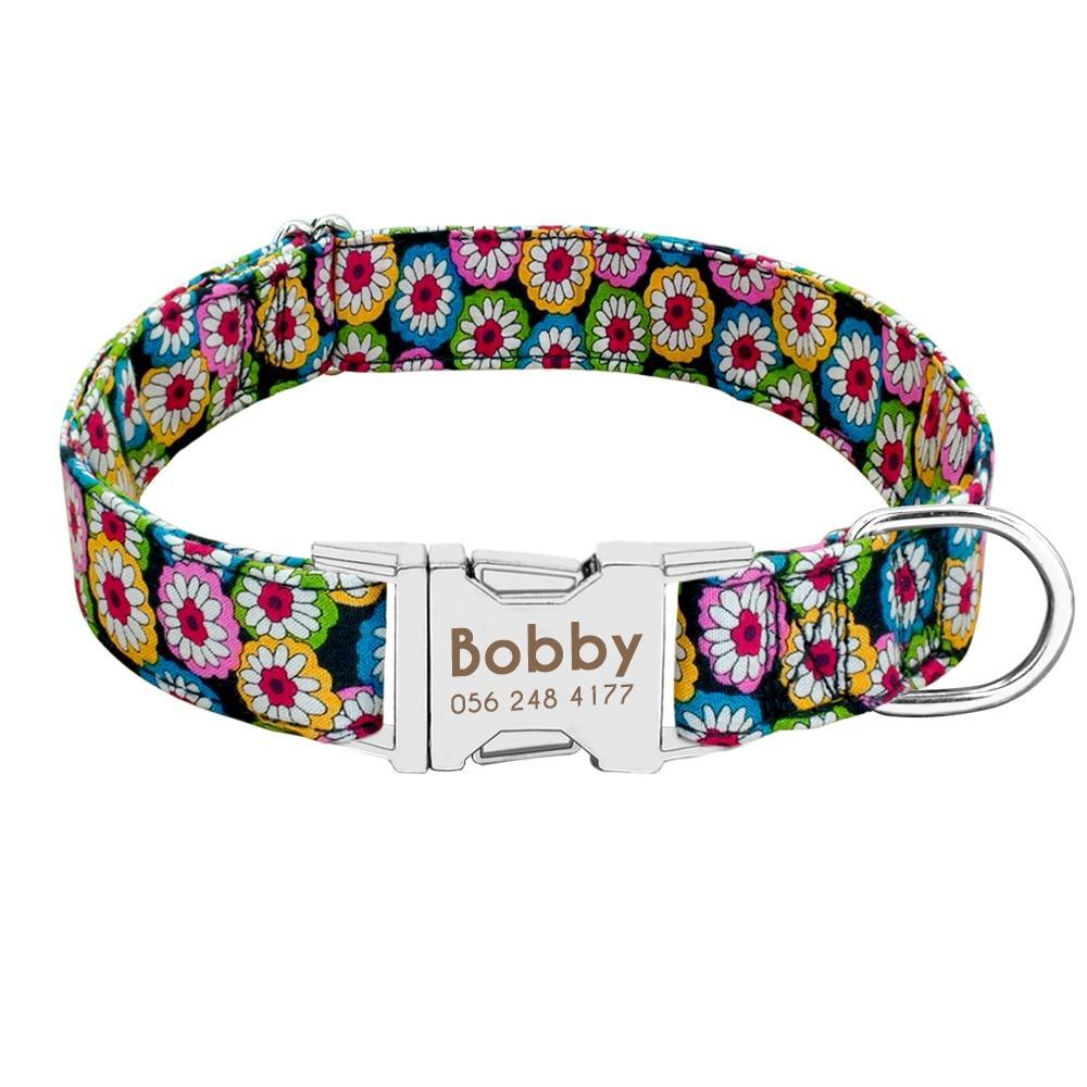 Constructed by premium quality nylon it's going to hug your dog's neck without causing any rashes or redness. Our colourful collars are beautifully designed and are customized with your dog's name.