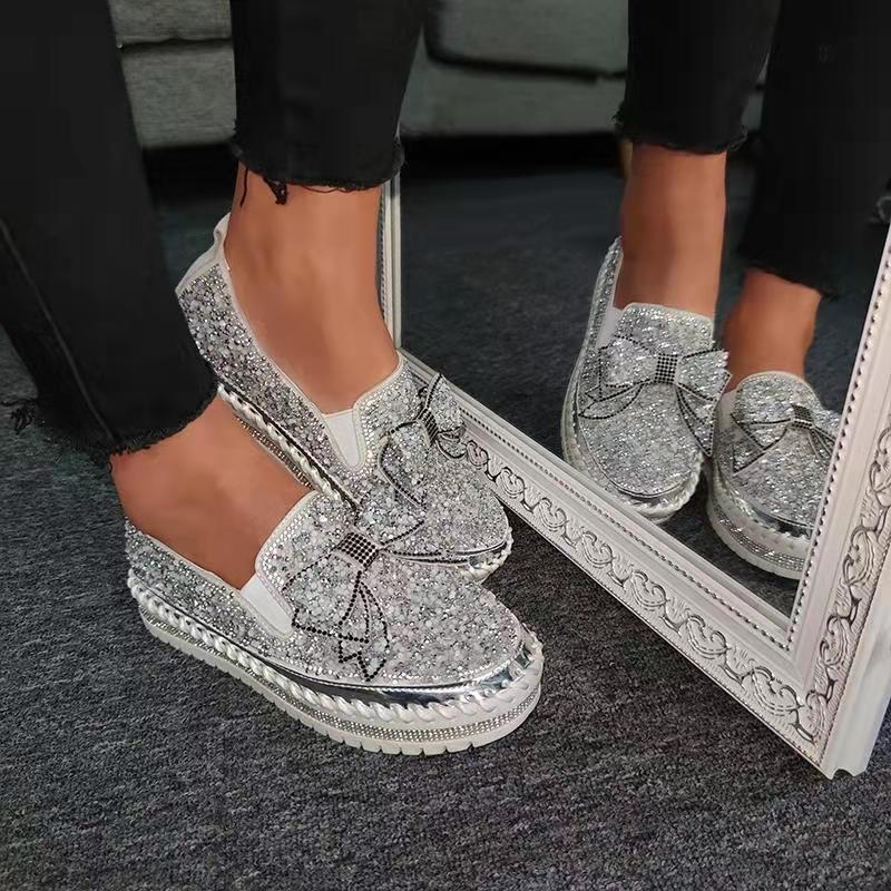 Women Shining Rhinestone Fashion Slip-on Bowknot Flats